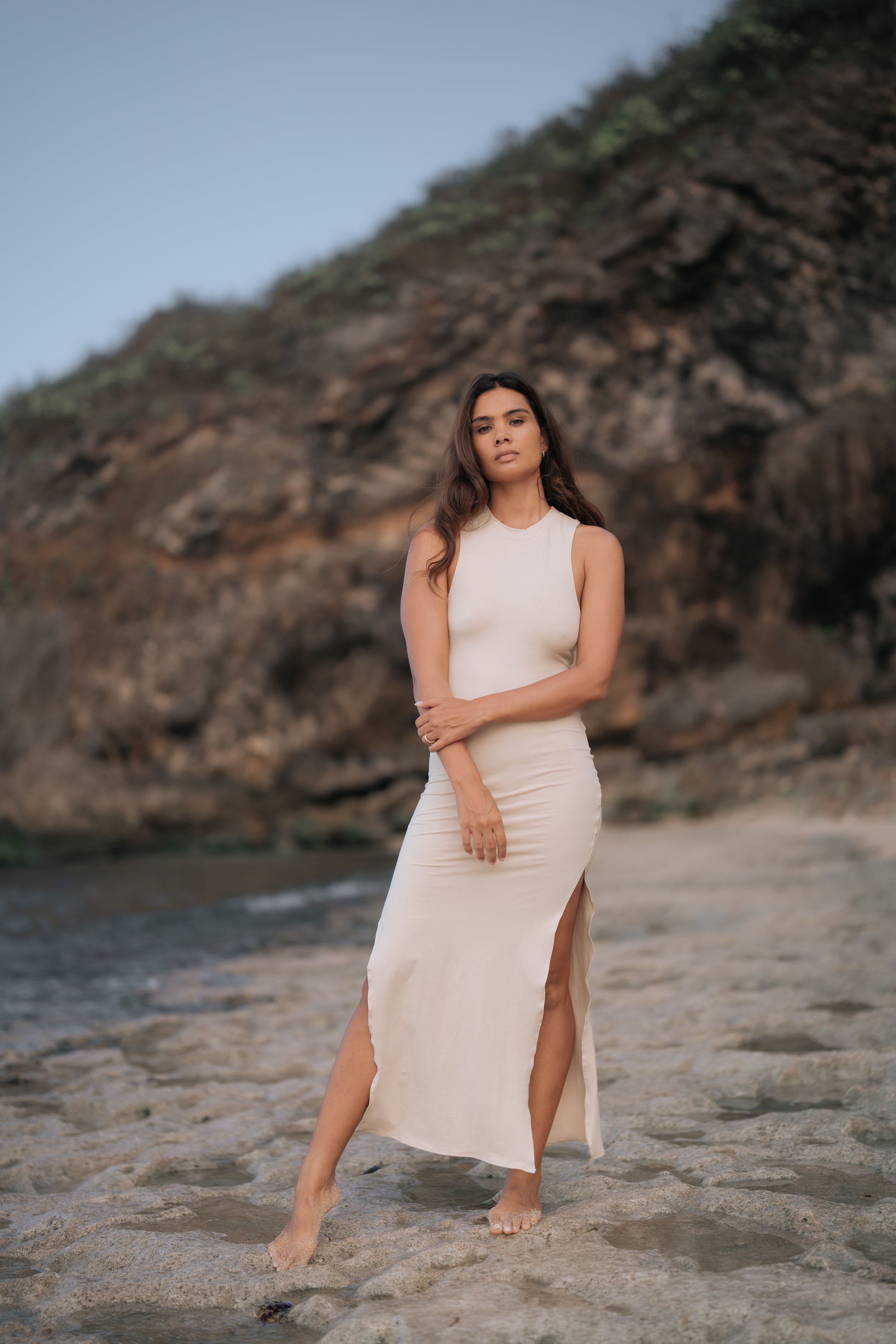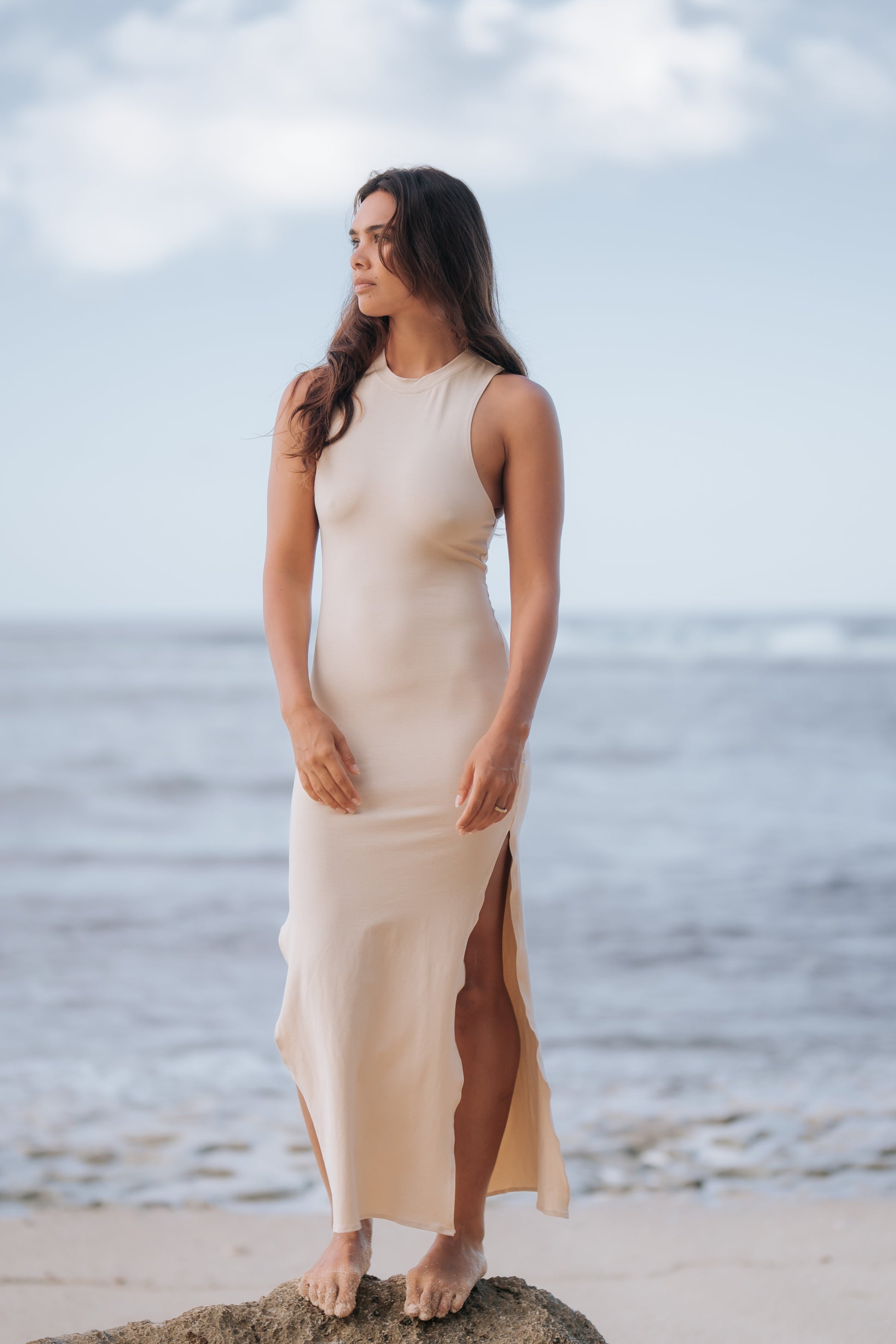 Bella everyday Bamboo Spandex Long Dress Sand