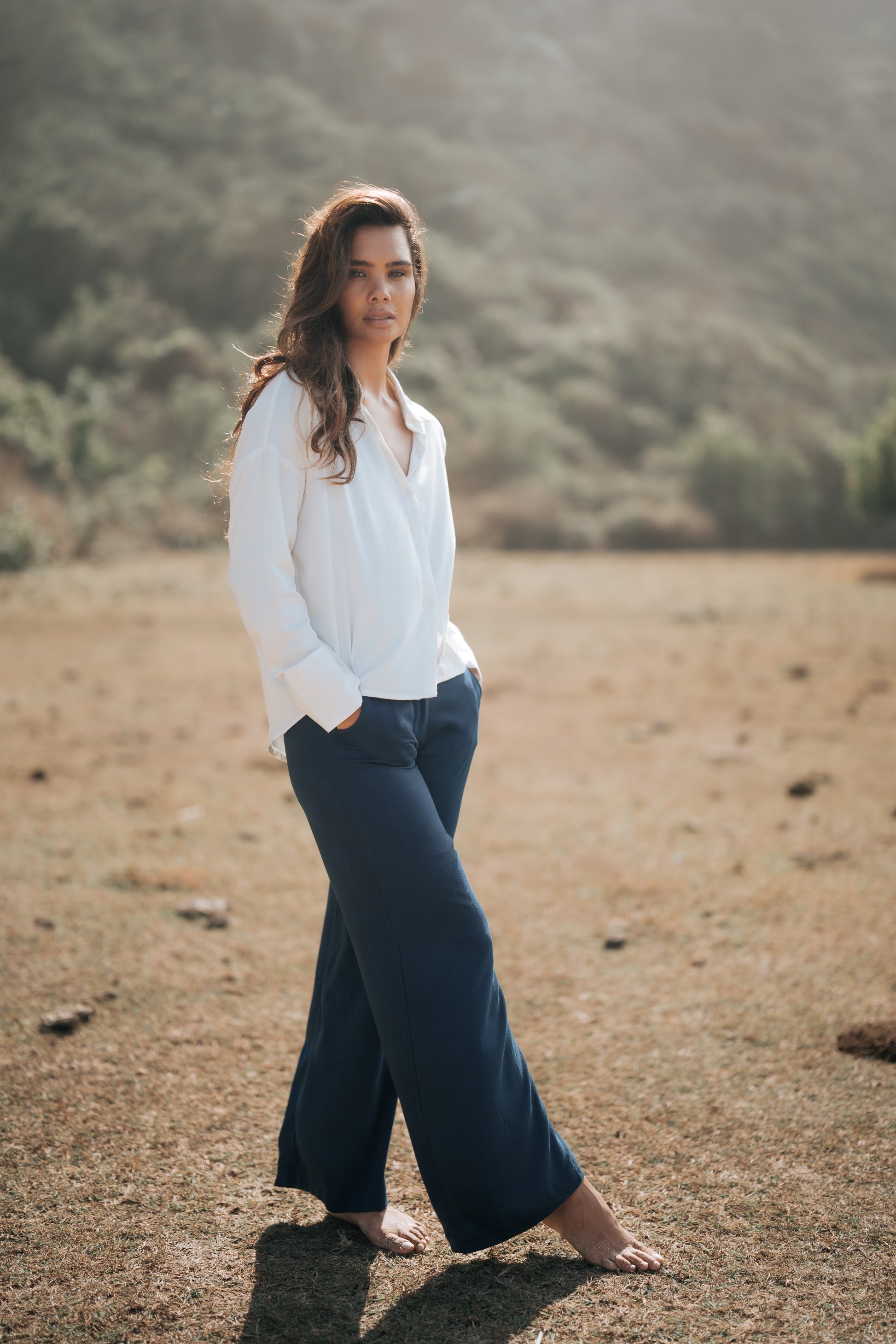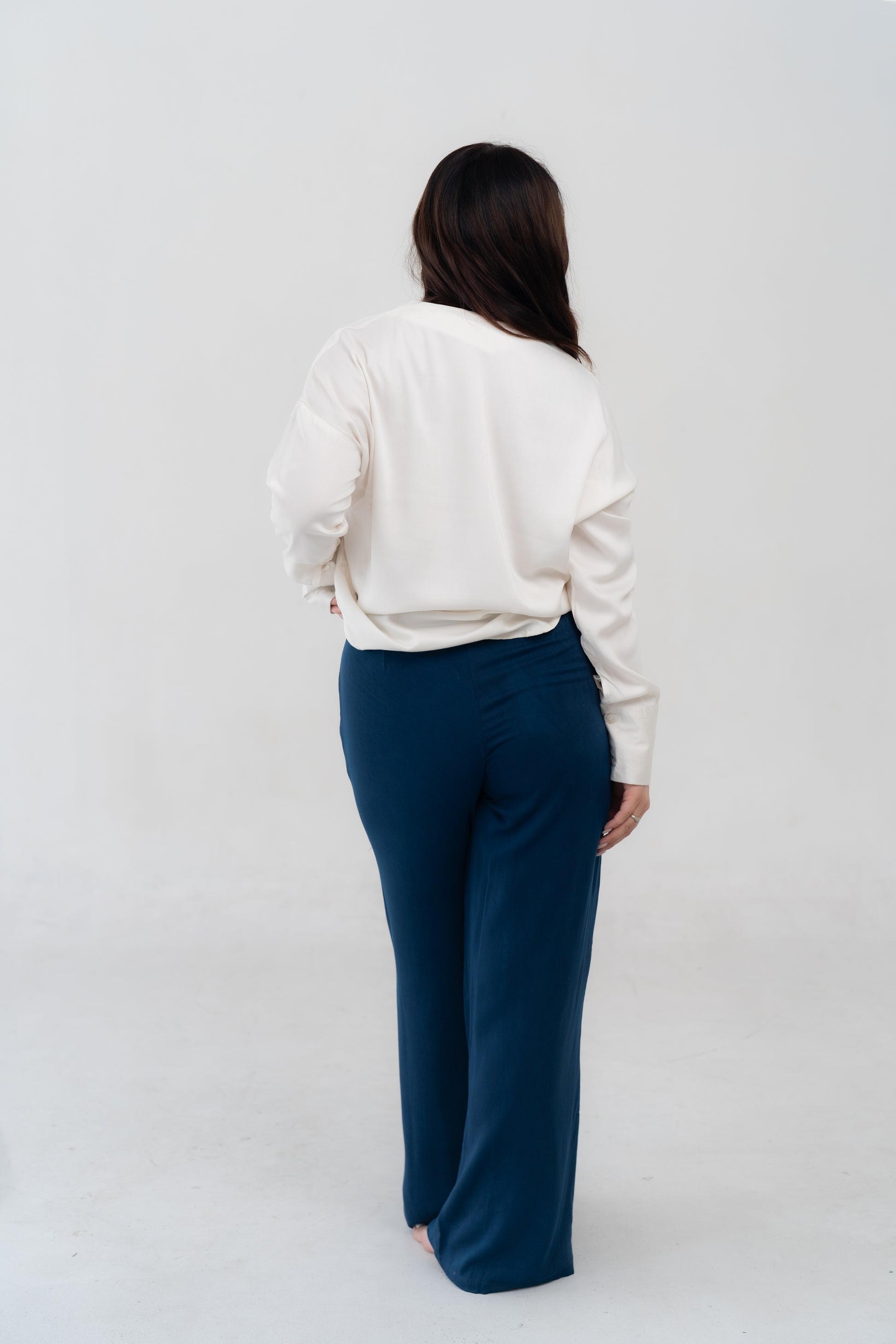 Elle Long Pants in Indigo, meticulously handcrafted in Bali. Made from bamboo satin and dyed with 100% natural ingredients, this pants offers a sustainable choice without compromising on style. The rich terracotta hue and indigo, achieved through eco-friendly processes, add a warm, earthy touch to your wardrobe.