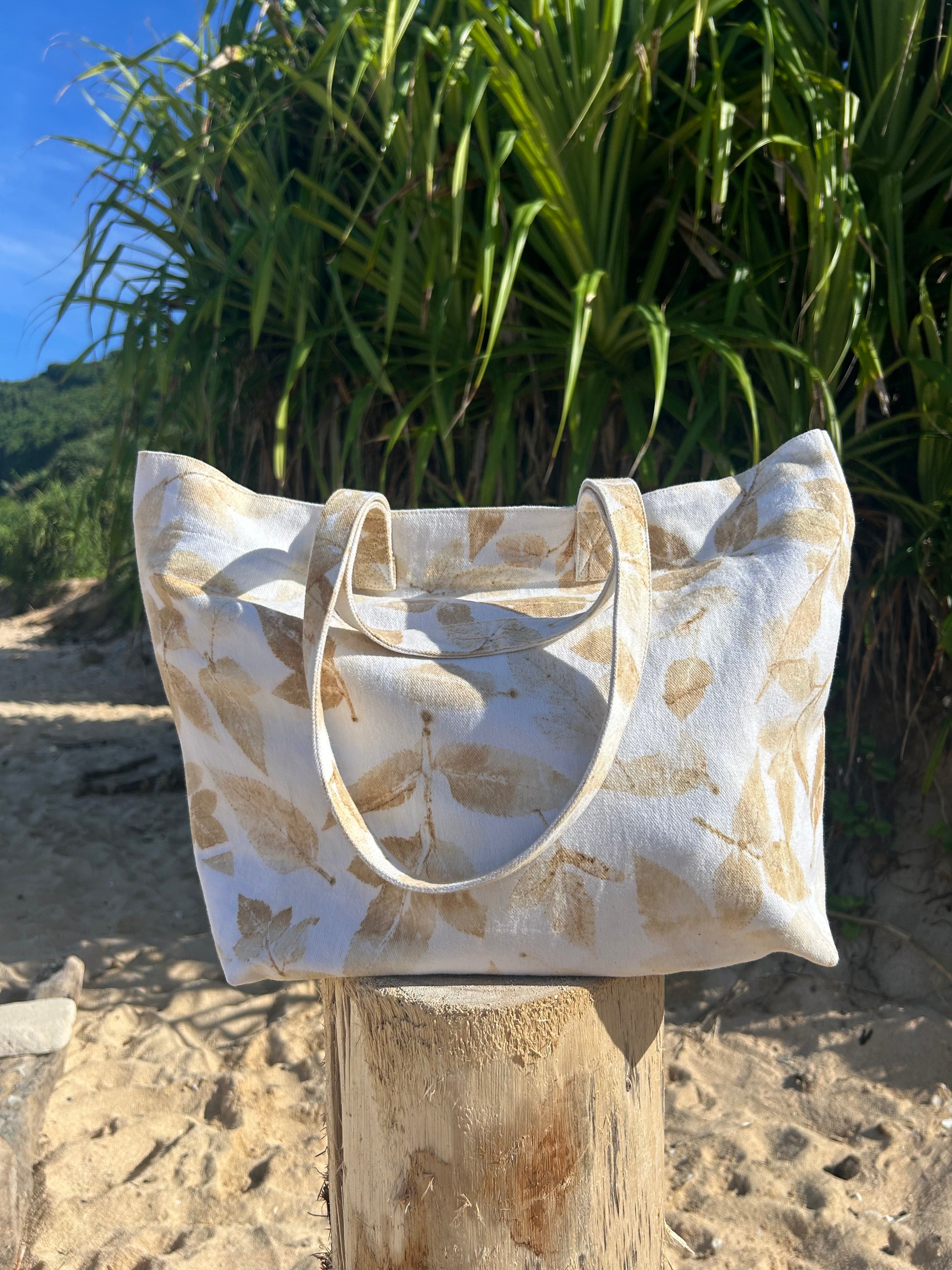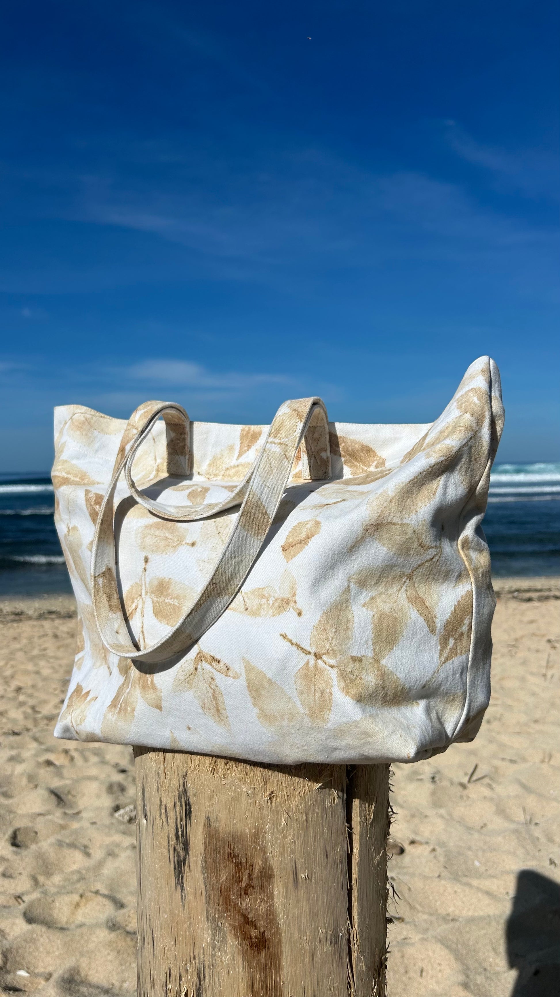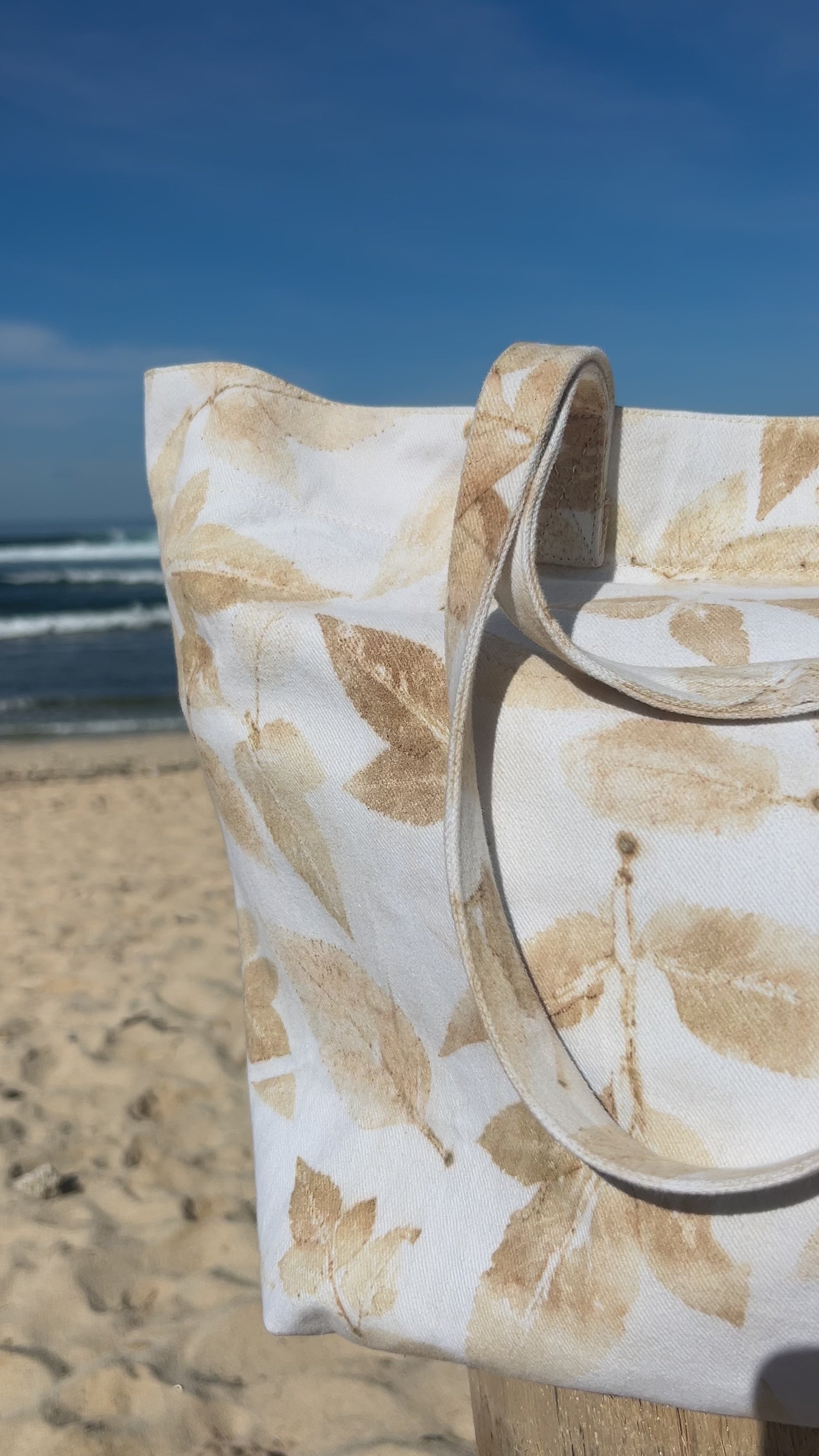 Soft Touch Suede Eco Print Canvas Bag - Double Strap Comfort with Inner Zipper Pocket