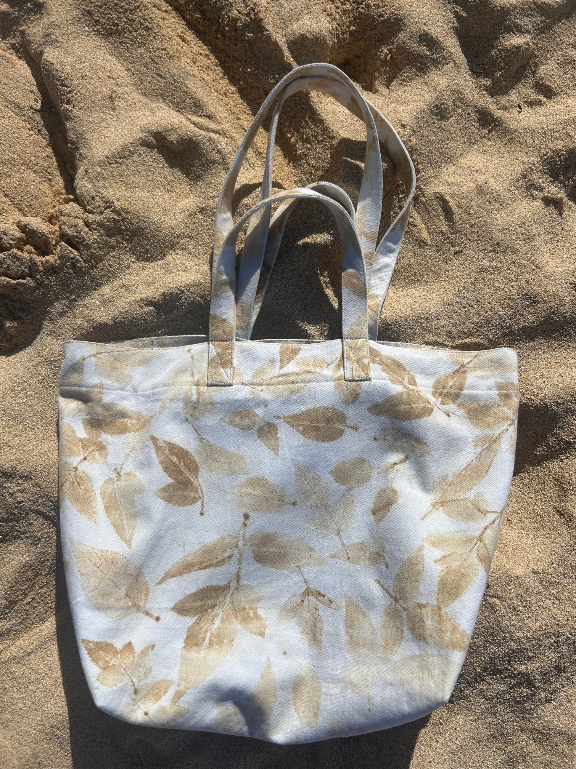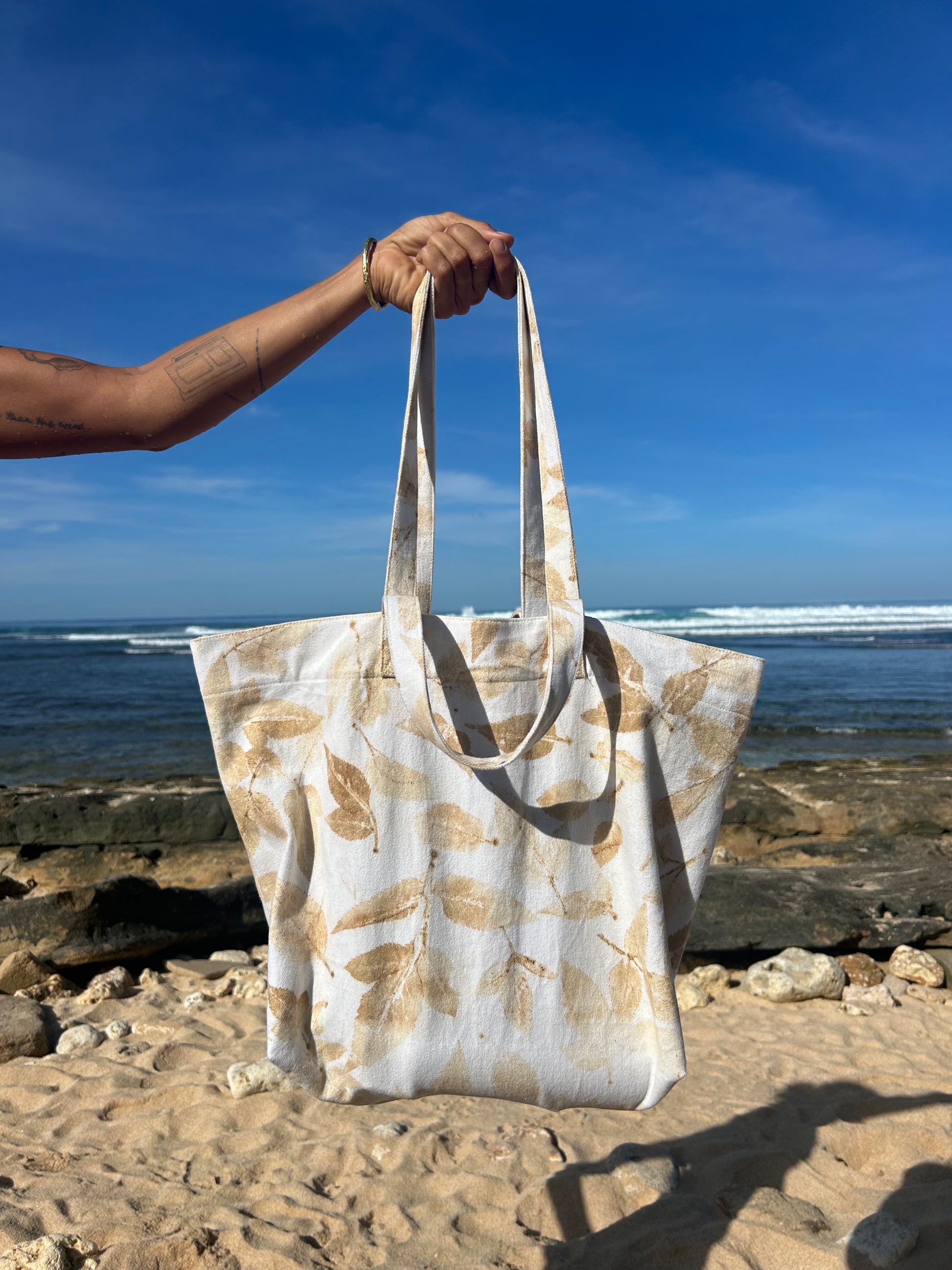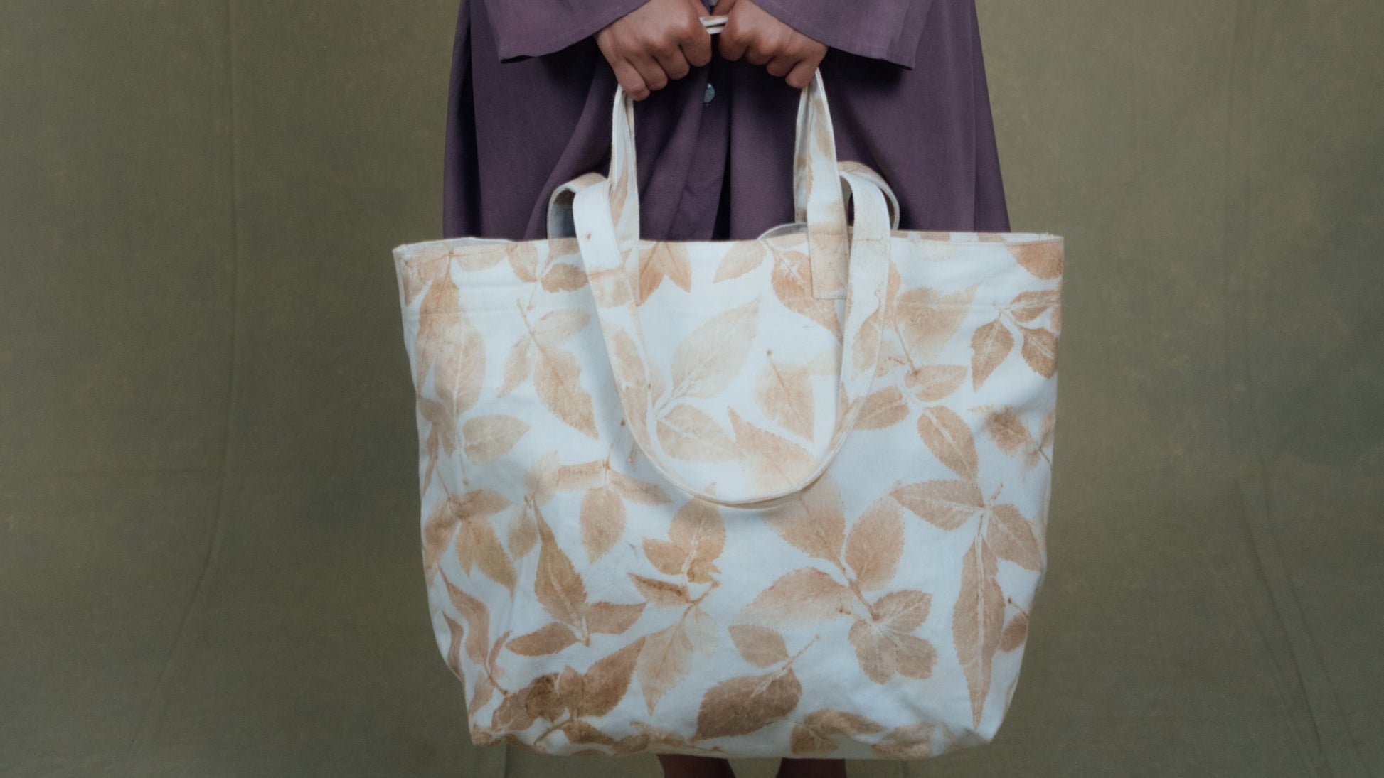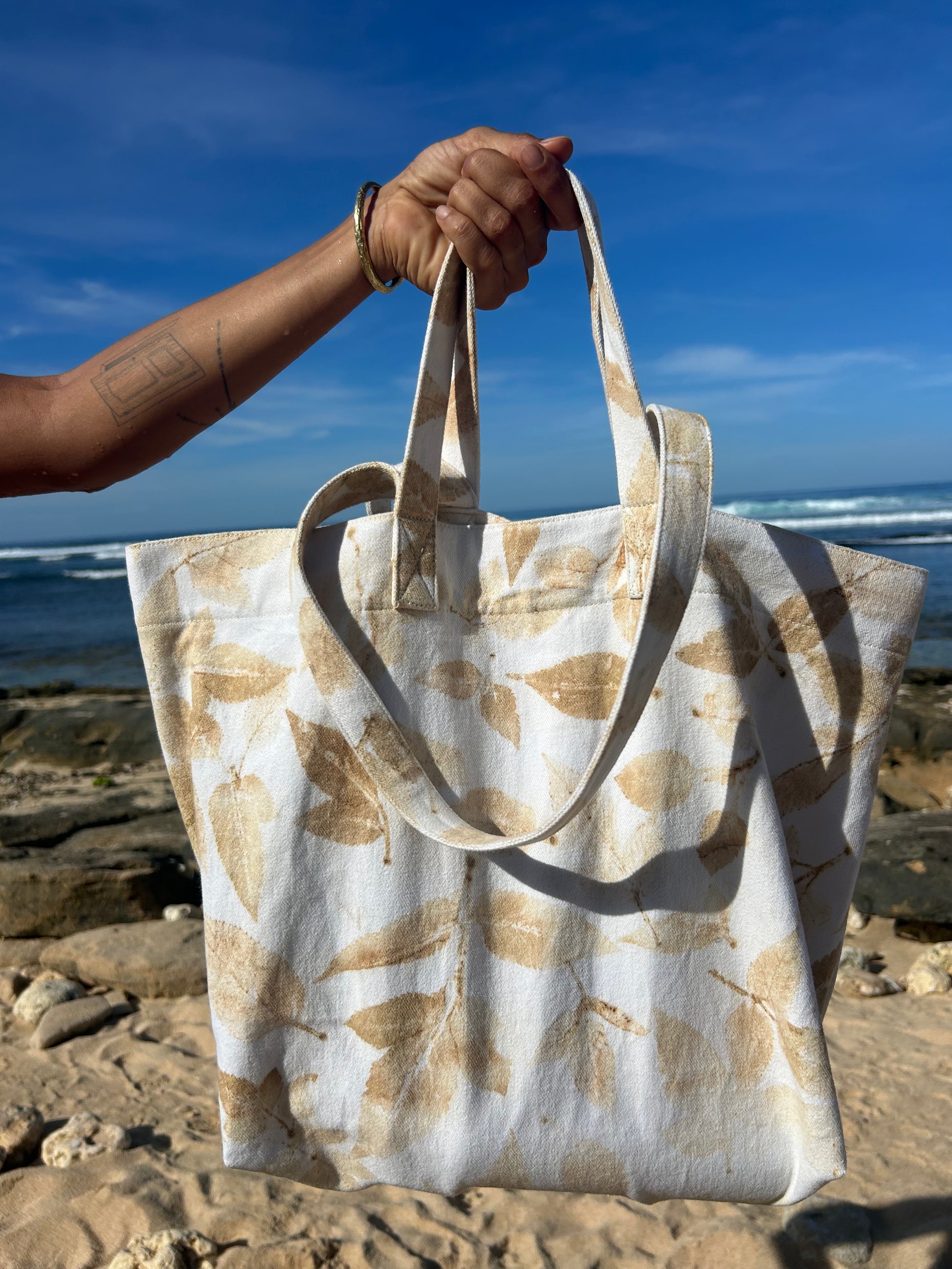 Soft Touch Suede Eco Print Canvas Bag - Double Strap Comfort with Inner Zipper Pocket
