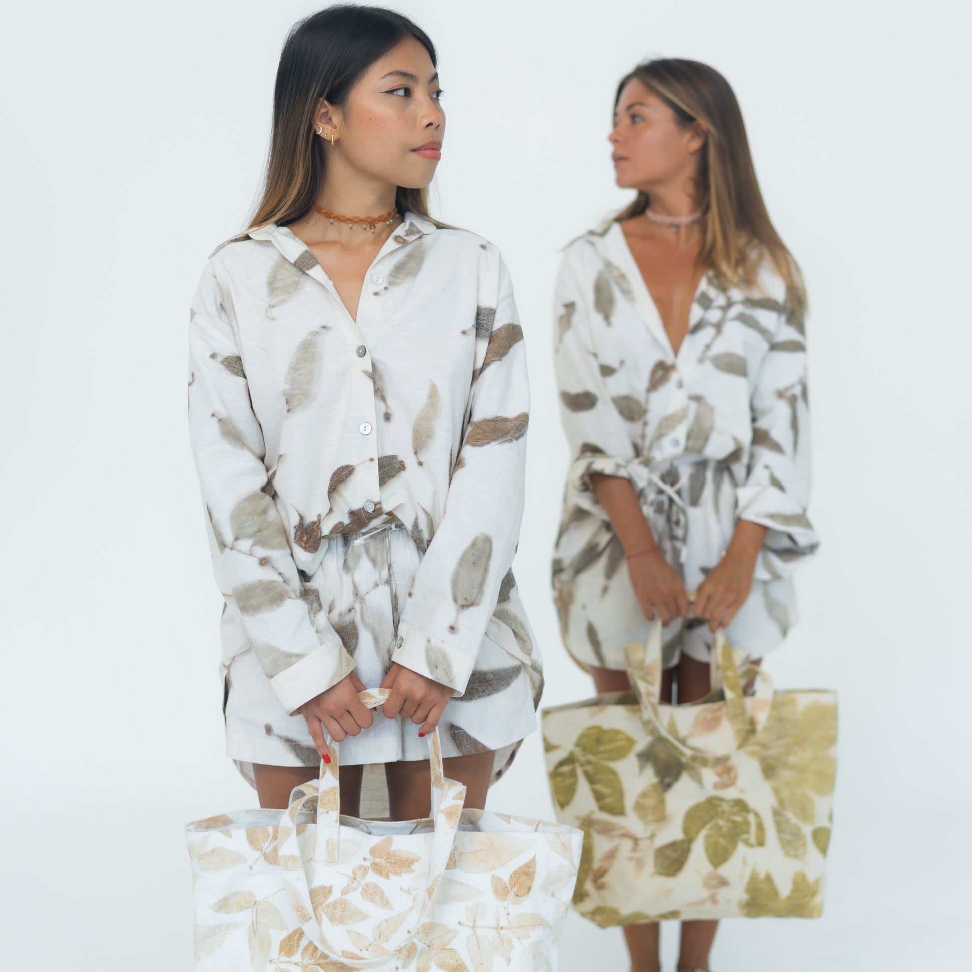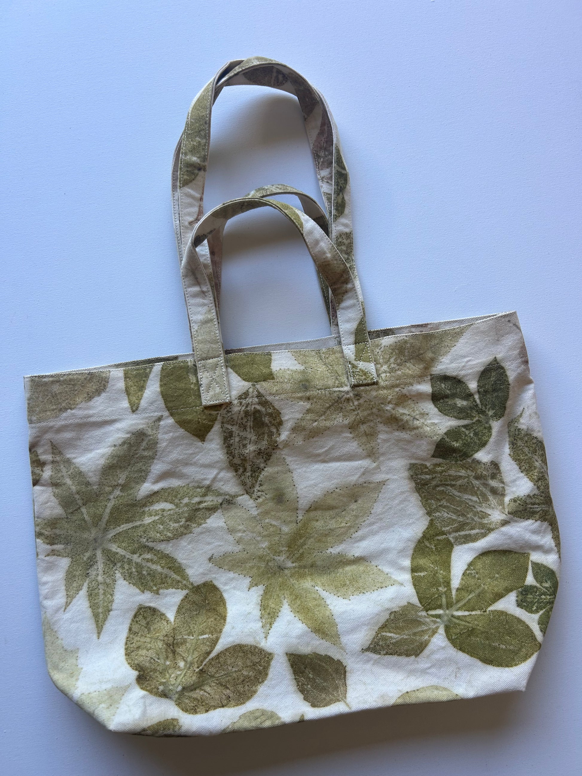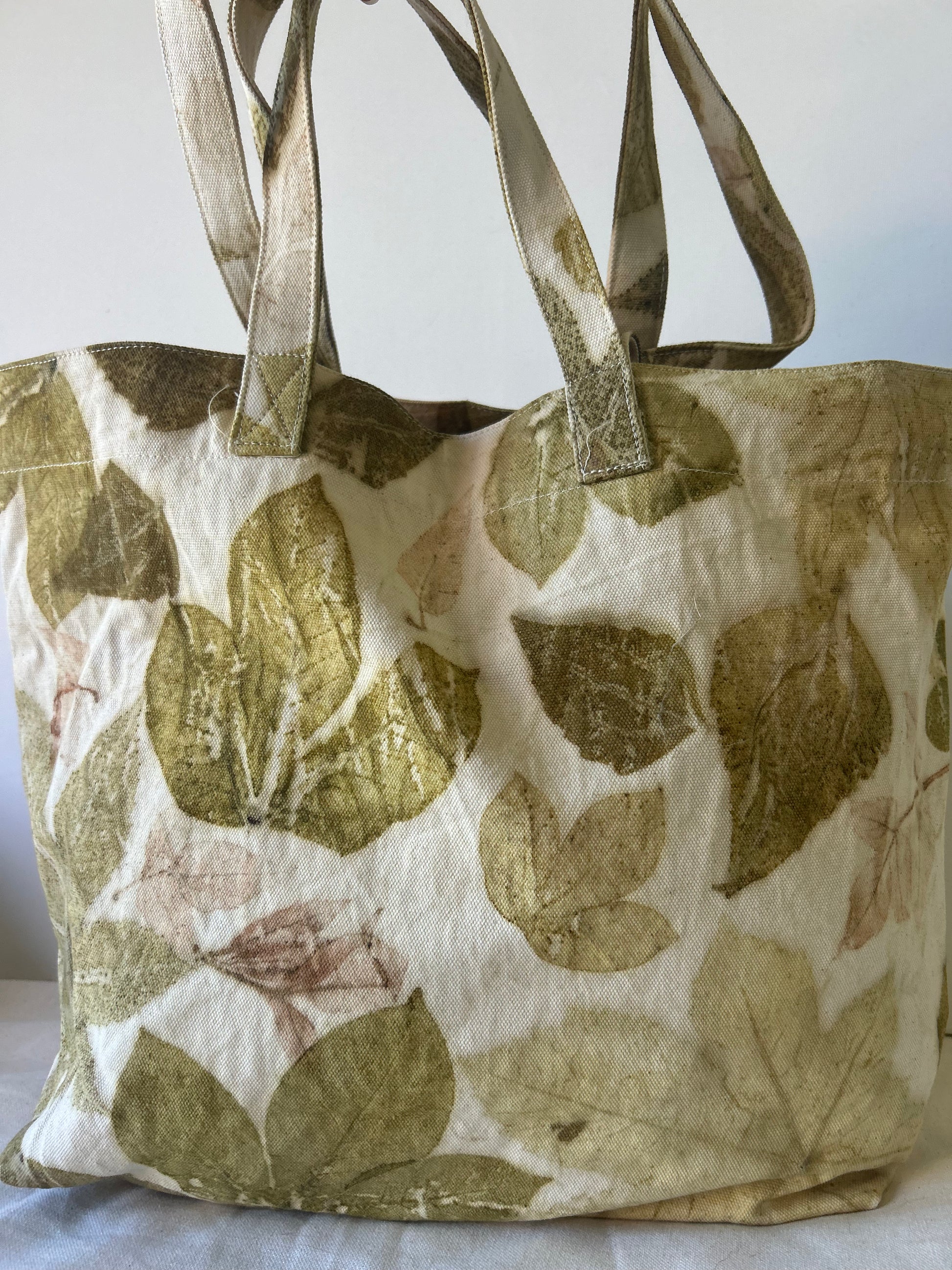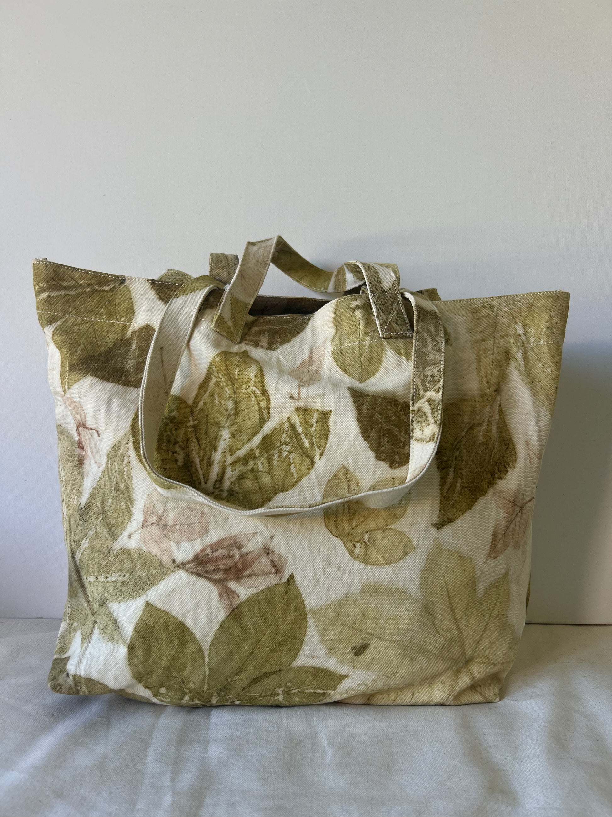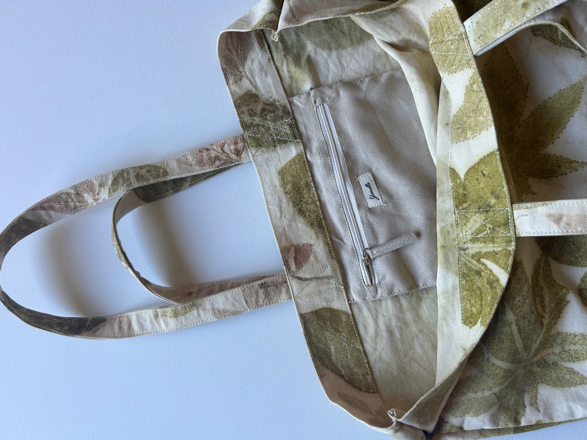 Eco Print Canvas Bag - Double Strap Comfort with Inner Zipper Pocket